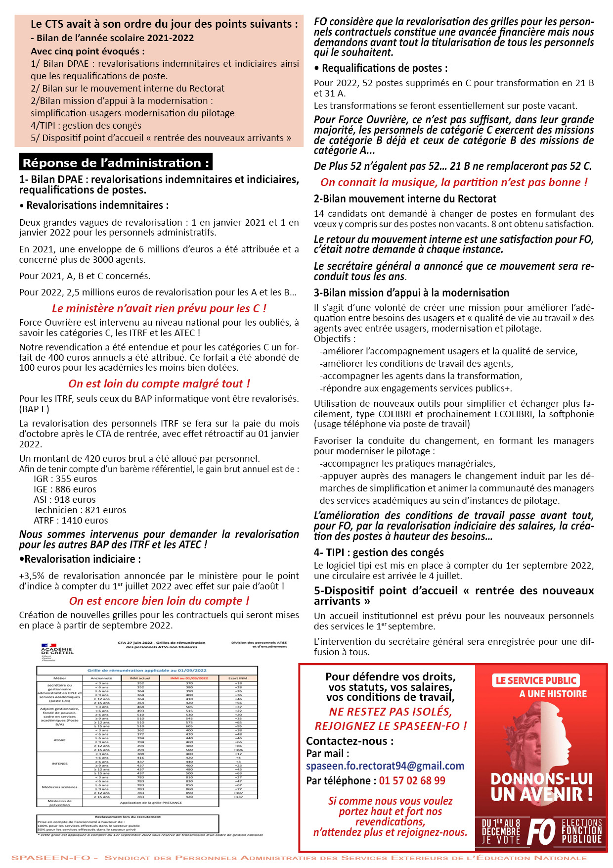Remplissez le bulletin en utilisant l'indice indiqué sur votre bulletin de salaire.